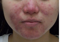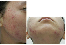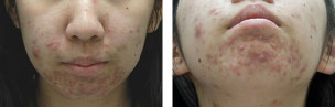 写真の患者様は、完全にこのサイクルにはまってしまっており、ご本人が考えていたよりも、ニキビはかなり重症化していました。