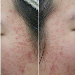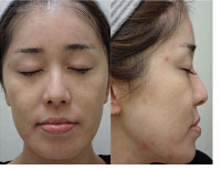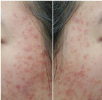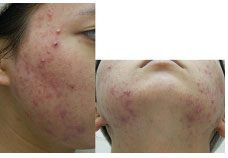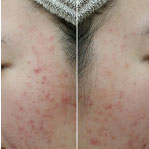 アトピーの症状が不安定で、この時は強く症状が出ていました。写真で見える赤みは、もはやニキビではなく湿疹でした。ニキビ自体はほぼなくなっており、いったんここで3週間ごとの治療は終了し、間隔をあけてみることになりました。