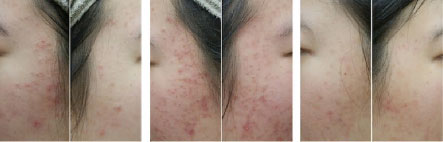 - ・治療過程で、表面に見えるニキビが増えることがありますが、好転反応として正常な反応のひとつで一時的なものです。