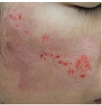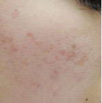 この時、湿疹はやや治まっていましたが、フェイスラインのニキビはまだ停滞しています。