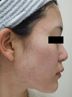 アトピーの症状が不安定で、この時は強く症状が出ていました。写真で見える赤みは、もはやニキビではなく湿疹でした。ニキビ自体はほぼなくなっており、いったんここで3週間ごとの治療は終了し、間隔をあけてみることになりました。