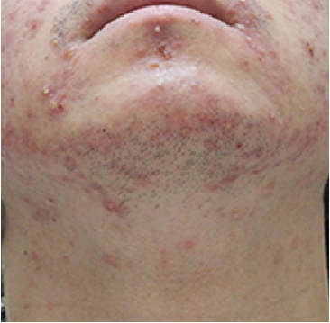 今回の症例では炎症性ニキビに加え膿を伴うニキビを多く認めました。