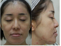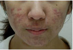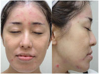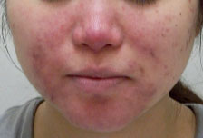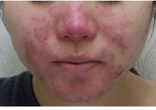 写真の患者様は、完全にこのサイクルにはまってしまっており、ご本人が考えていたよりも、ニキビはかなり重症化していました。