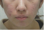 ニキビは少ないように見えるかもしれませんが、頬にはニキビが無いもののほかは全体的に炎症ニキビが点在している状態でした。もともとアトピーがあって、アトピーの症状が出やすい部分にニキビも出やすい状態でした。