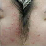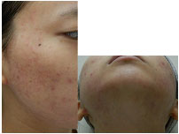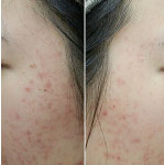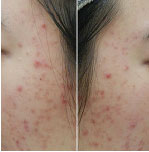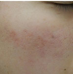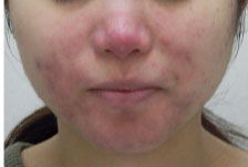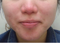 アトピーの症状が不安定で、この時は強く症状が出ていました。写真で見える赤みは、もはやニキビではなく湿疹でした。ニキビ自体はほぼなくなっており、いったんここで3週間ごとの治療は終了し、間隔をあけてみることになりました。