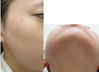 細かいくっきりしたクレーターが点々とありますね。もうニキビは出ない状態で、やっぱりどうしても気になるとのことで、フラクショナルレーザーに踏み切りました。