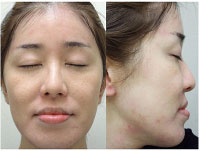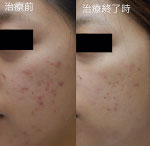- ・治療過程で、表面に見えるニキビが増えることがありますが、好転反応として正常な反応のひとつで一時的なものです。
