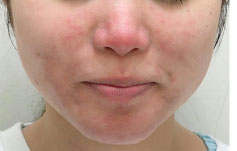 この時、湿疹はやや治まっていましたが、フェイスラインのニキビはまだ停滞しています。