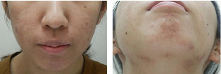 ニキビは少ないように見えるかもしれませんが、頬にはニキビが無いもののほかは全体的に炎症ニキビが点在している状態でした。もともとアトピーがあって、アトピーの症状が出やすい部分にニキビも出やすい状態でした。