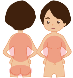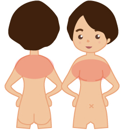 顔全体or前頸部(肩含む) or後頚部(肩含む)or両上腕 |