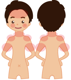額or頬or前頸部or後頚部 orフェイスライン or両肩or両上腕 |